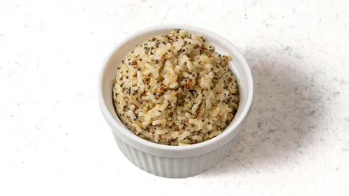 Jerk seasoned shrimp served with your choice of rice, three sides, and a side of sauce. Garnished with a lemon wedge and green onions. (Gluten-free)
